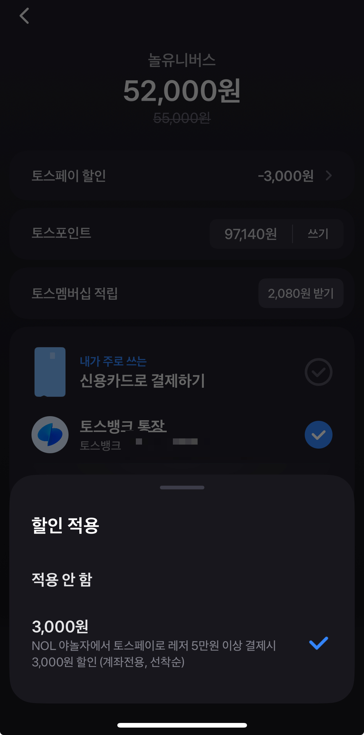 저는 3천원 할인을 받기위해 토스페이로 결제를 했습니다.